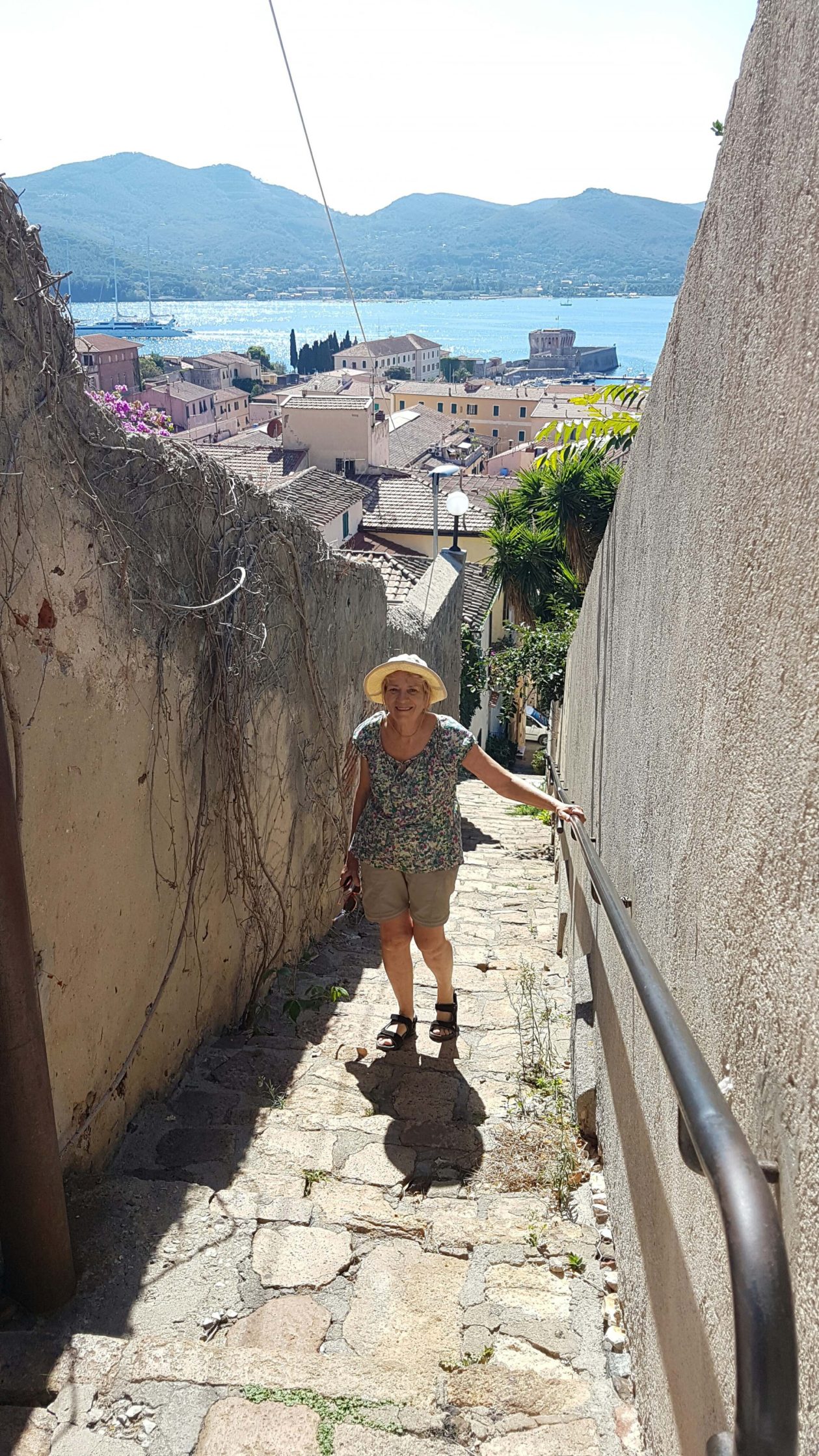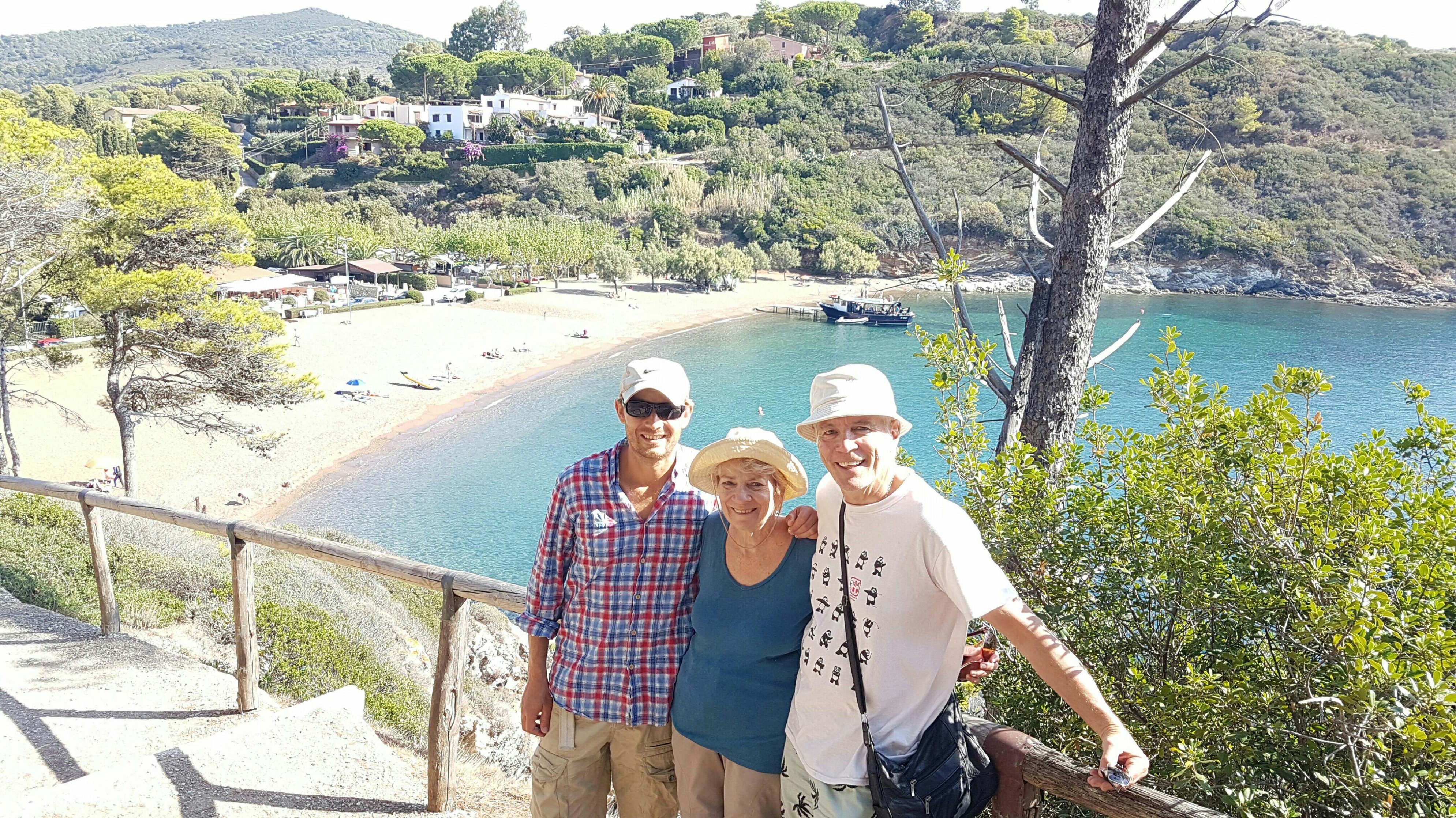 A second day of passage making. We left Ponza with some nice winds and sailed a consistent 5-6knots (a good speed for us) all the way up to the mouth of the Tiber river. Rome was founded on the banks of the Tiber some 25km inland. Today the river is more of a public sewer and it is a little hard to imagine someone ‘crossing the tiber’ back in the day. We were here to finally get our watermaker fitted (which desalinates sea water for us to drink), and pick up my mum and Keith for some crushing up the coast. Watch that rock A great introduction to sailing for Mum and Keith, with an amazing sail up the coast to the Tuscan Archipelago from Rome. With a nice 10-15 knots we managed to do over 7 knots most of the day. And we even caught a fish – a small bluefin tuna that we released. We got as far as Isola de Giglio, which is probably most famous as the place where the Costa Concordia was ran aground by a drunk captain in 2012. The island is beautiful with nice walks, clear water and its own wine! What more could you want 😉 Beautiful day on Isola de Giglio We moved to the port in the morning, making sure to steer clear of the Costa Cordia wreck. After taking some time to figure out the anchor out / stern to wharf mooring combo, we enjoyed some of the local anchovy pizza special. In the afternoon we hiked up to the hilltop castle town, where by chance we came across a local winemaker who asked us in to his cave to see his winemaking and try his local drop. It wasn’t bad! In the afternoon we took the easy route back (by bus) before enjoying the great cruising combo of sundowner deck drinks followed by a nice seafood dinner. A perfect day! Mum and Keith seem to be settling in to the cruising life.
